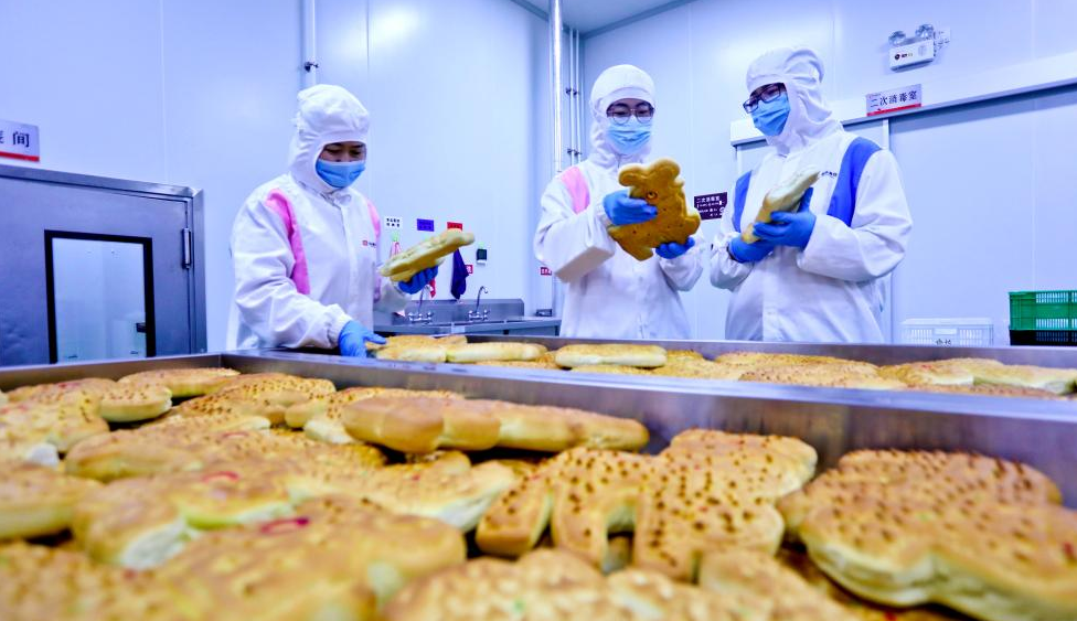 9月9日,甘肅省張掖市一家月餅加工車(chē)間內,工作人員用和好的面團趕制造型各異的中秋傳統“土月餅”。中秋節臨近,甘肅省張掖市多家食品加工企業(yè)推出品種繁多的月餅,方便市民選購。