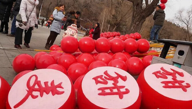 2月22日,吉林市北山公園里,長(cháng)2.5米的巨型“糖葫蘆”成了市民新春“爭搶”的目標。紅彤彤的“糖葫蘆”看著(zhù)很誘人,圍觀(guān)的市民要想捧起,還頗費些力氣。原來(lái),這50根“糖葫蘆”是用泡沫做的,外表被漆成紅色,中間用一根長(cháng)長(cháng)的鐵管串起來(lái),擺放在雪地上!疤呛J”中看不中吃,但卻成為市民拍照青睞的道具。