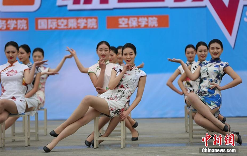 3月29日,一場(chǎng)專(zhuān)業(yè)職業(yè)技能的比賽在四川西南航空職業(yè)學(xué)院舉行。在其中的“客艙乘務(wù)員職業(yè)姿態(tài)”展示環(huán)節,已被航空公司錄取的準空姐們身穿旗袍,帶來(lái)一場(chǎng)超養眼的視覺(jué)盛宴。