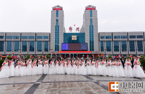5月25日上午9時(shí),在鄭州車(chē)站的東廣場(chǎng)上,27對穿著(zhù)西裝婚紗的俊男美女,成為廣場(chǎng)上一道亮麗的風(fēng)景線(xiàn),路人紛紛。