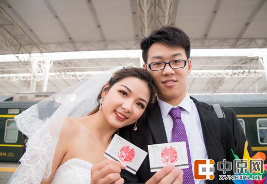 27對新人一同從鄭州車(chē)站出發(fā),乘火車(chē)前往鄭州局集團公司所屬的鄭州橋工段職工教育培訓基地,準備迎接第二天的集體婚禮。