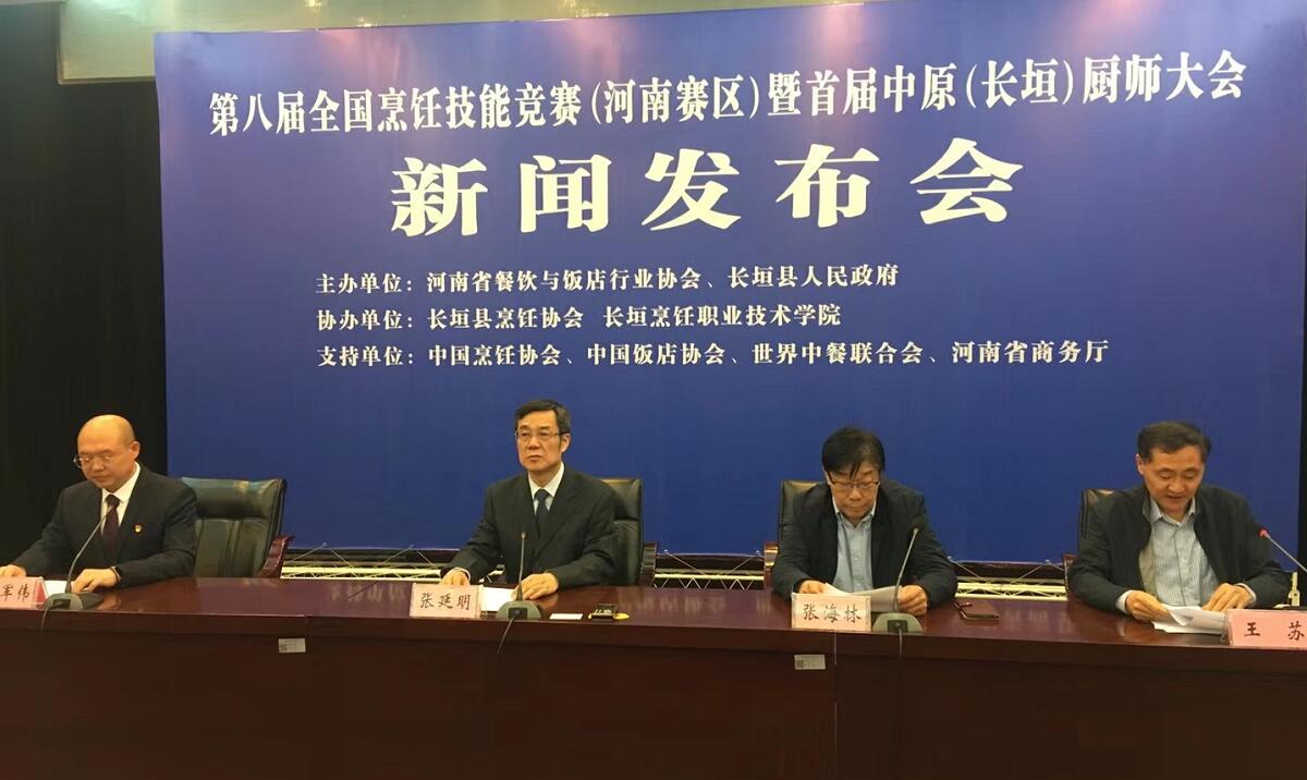 新聞發(fā)布會(huì )由河南省商務(wù)廳服務(wù)貿易處處長(cháng)王蘇主持,河南省商務(wù)廳廳長(cháng)、黨組書(shū)記張延明致辭,長(cháng)垣縣人民政府縣長(cháng)趙軍偉、河南省餐飲與飯店行業(yè)協(xié)會(huì )會(huì )長(cháng)張海林分別介紹了大會(huì )在“中國廚師之鄉”長(cháng)垣舉辦的原因、目的和意義,以及本屆廚師大會(huì )的精彩內容。