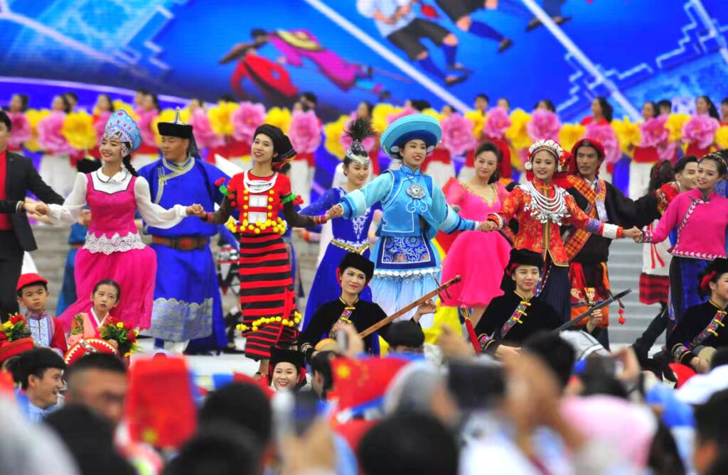 9月12日,第十一屆全國少數民族傳統體育運動(dòng)會(huì )民族大聯(lián)歡活動(dòng)在炎黃廣場(chǎng)盛大開(kāi)幕。來(lái)自全國各地的少數民族運動(dòng)員、社會(huì )各界嘉賓、志愿者等一萬(wàn)多人參與了這場(chǎng)民族大Party。