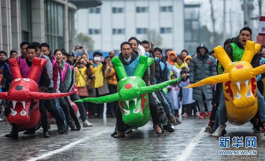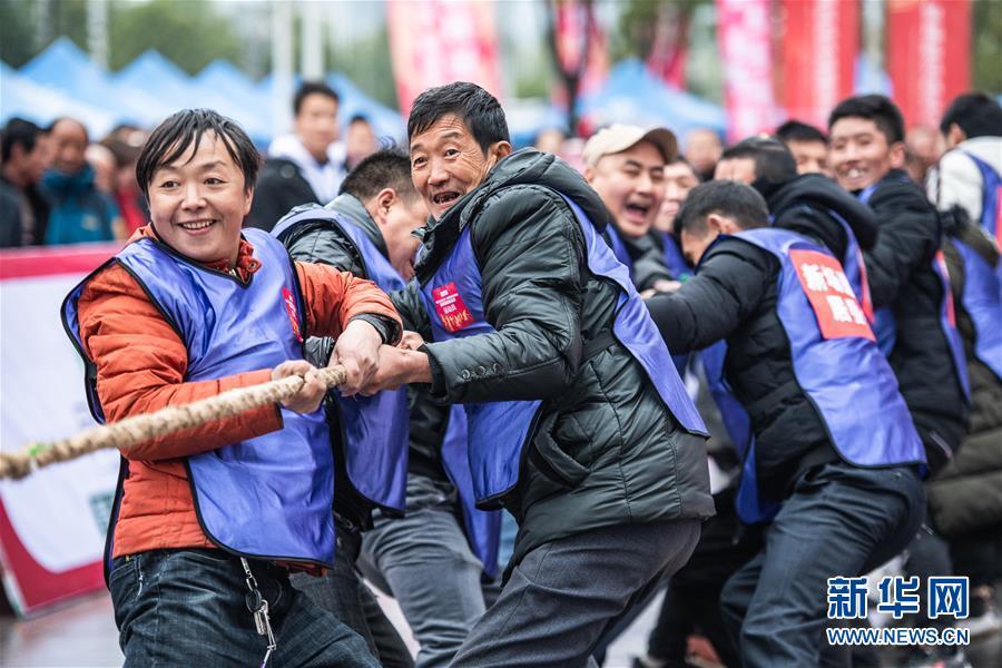 1月18日,來(lái)自當地易地扶貧安置社區的群眾參加旱地龍舟比賽。   當日,“紅紅火火過(guò)大年⋅多彩貴州迎新春”社區趣味運動(dòng)會(huì )在貴州六盤(pán)水市六枝特區舉辦。來(lái)自郎岱、龍場(chǎng)等12個(gè)易地扶貧安置社區的600余名群眾,在聚福新苑易地扶貧小區參加了旱地龍舟、勇挑重擔、投壺、拔河等趣味運動(dòng),開(kāi)心快樂(lè )迎接新年到來(lái)。