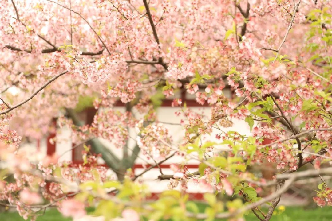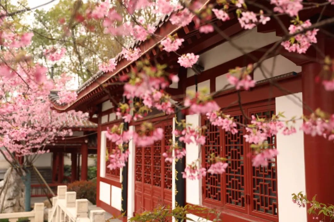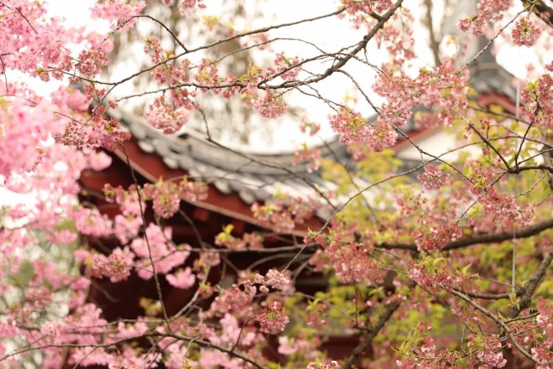 當武漢東湖櫻花遇上紅瓦白墻