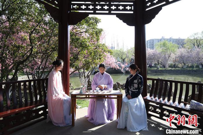 南京古裝美女會(huì )享莫愁湖海棠花會(huì )享